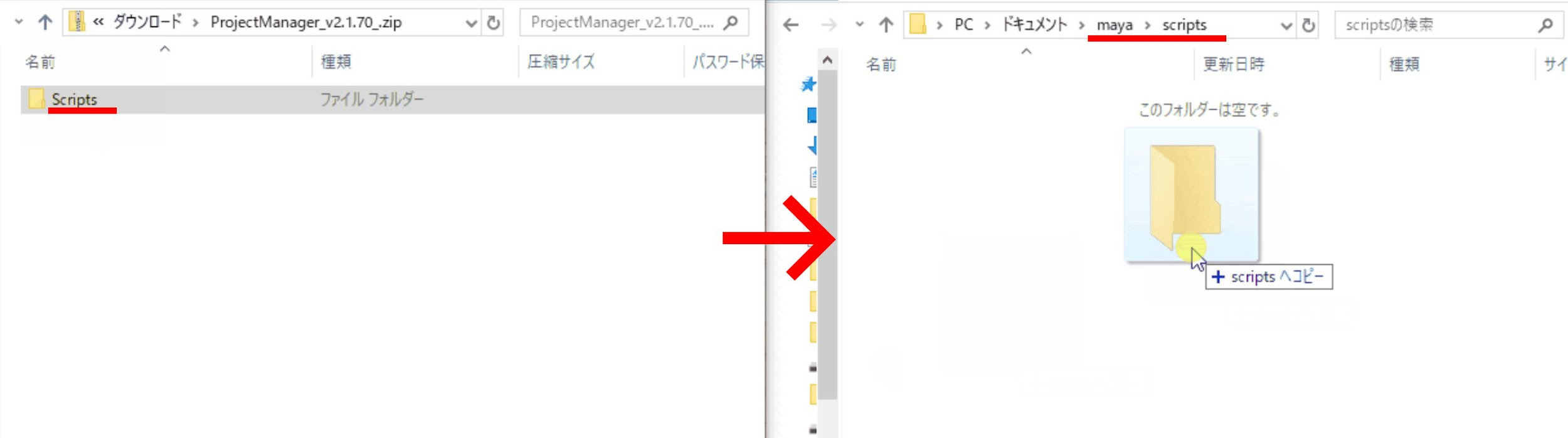 ②zipの中にあるScripts フォルダを下記の所にコピーする。